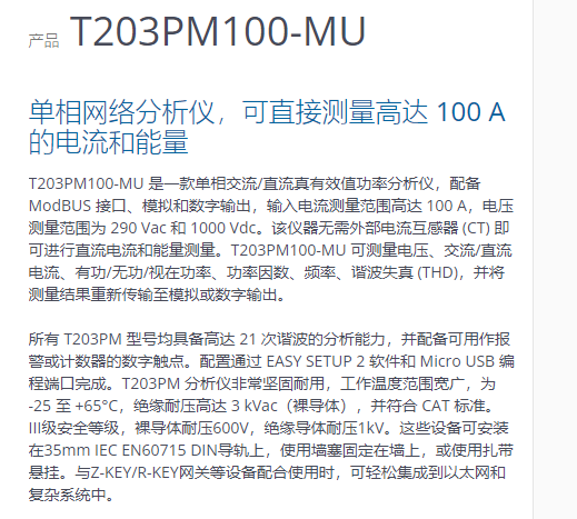 SENECA 单相网络分析仪T203PM100-MU系列